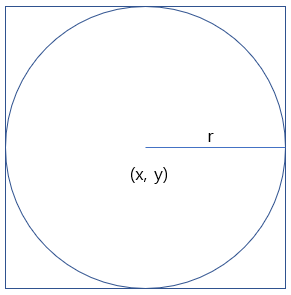 반지름이 r인 원을 감싸는 최소의 정사각형은 한 변이 2*r입니다. 따라서 정사각형의 가장 왼쪽 꼭지점은 (x - r, y + r) 입니다.
