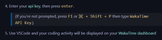 설치가 완료되었다면 F1 또는 crtl + shift + p를 눌러 wakatime의 api key를 입력하고 enter를 쳐줘야합니다. 상기 이미