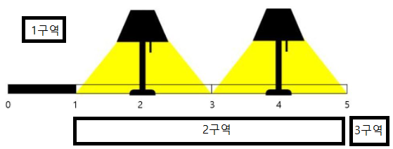 1. 0번 위치 ~ lamp[0] : 길이는 lamp[0]입니다. 이 만큼 비춰야 하지만 mid가 그보다 작다면 유효하지 않으므로 flag = 1로 세워줍니다.