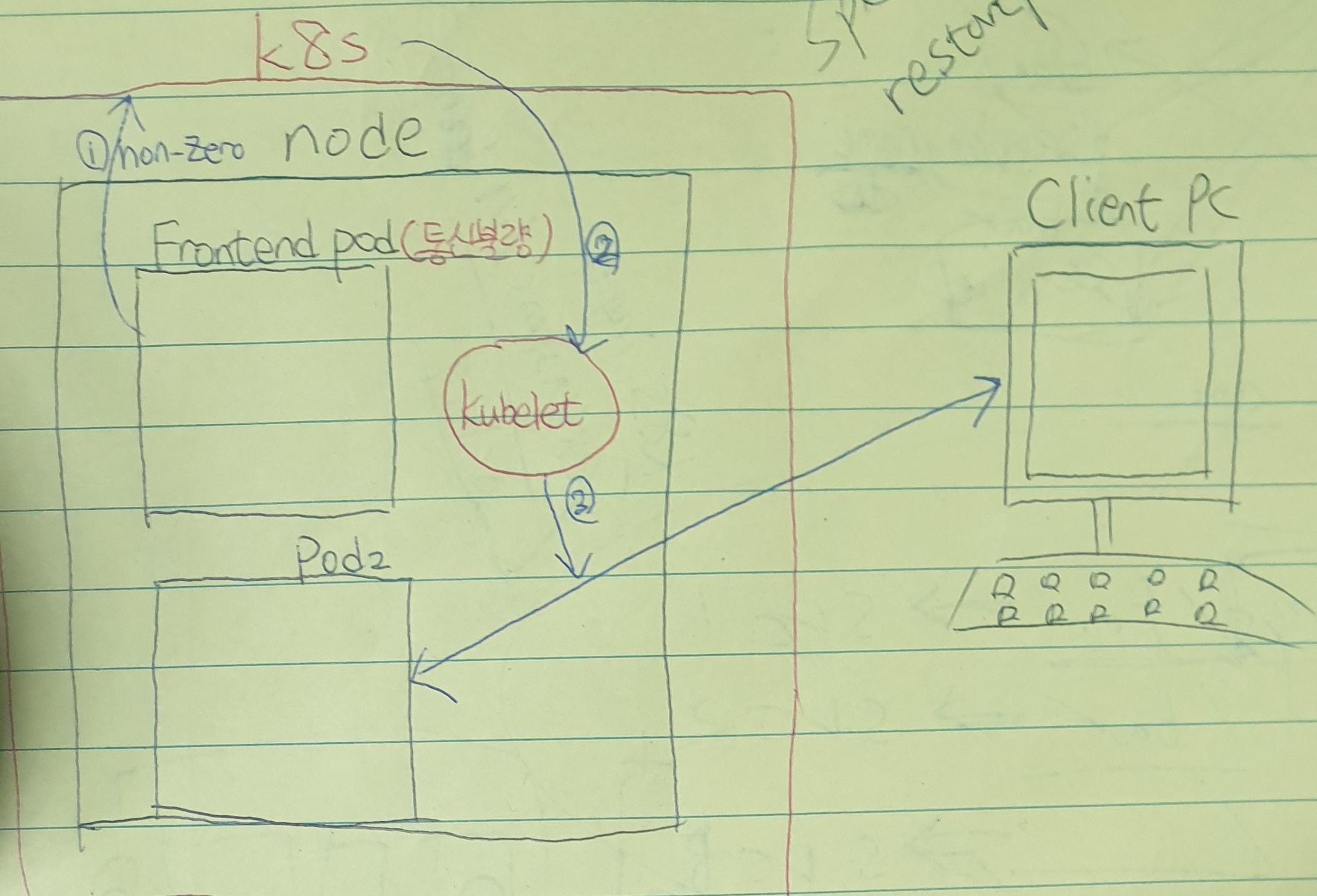 1. frontend pod가 요청처리 준비가 안되어 있음을 non-zero신호로 표현되며 이를 k8s로 송신합니다.