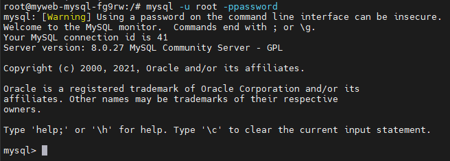 mysql -uroot -ppassword