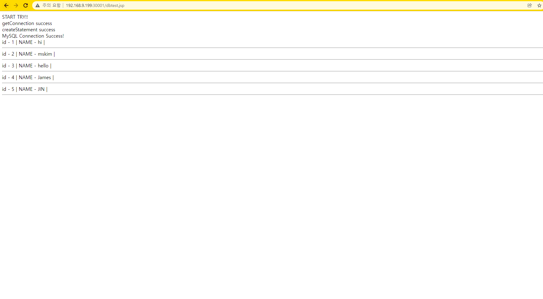 http://192.168.9.199:30001/dbtest.jsp
