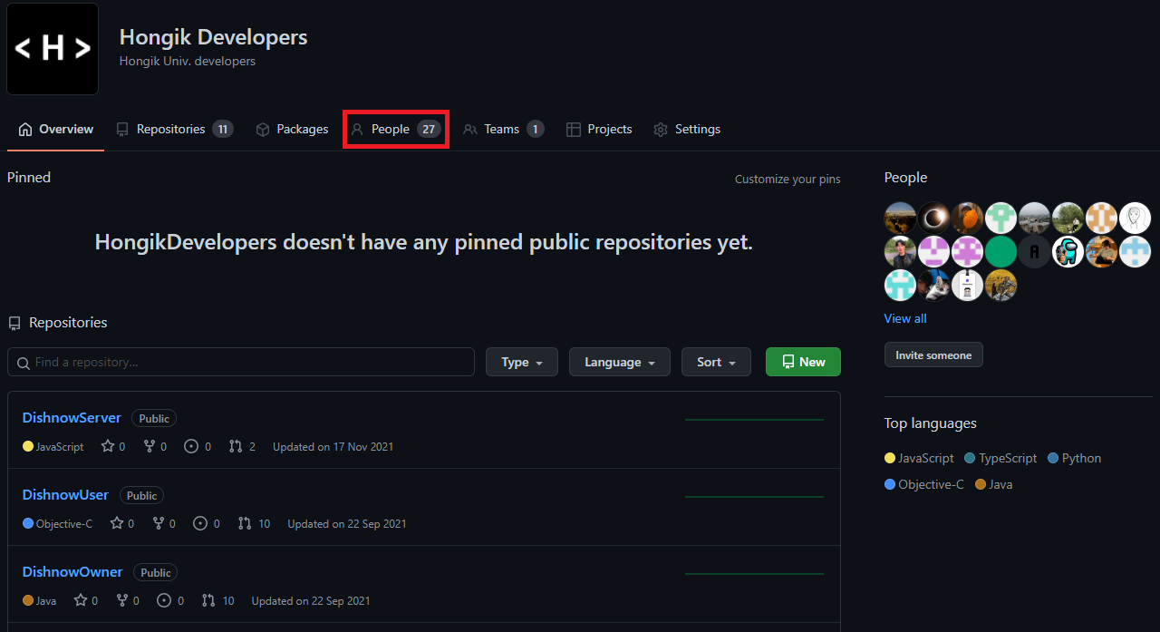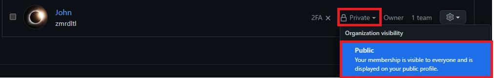 특정 organization에 속하게 되면 default로 다른 사람에게 보이지 않도록 private으로 설정되어 있습니다.
