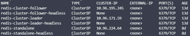 제 경우 노출된 ClusterIP type의 svc들 중 redis-standalone이므로 10.96.224.64로 접속했습니다.