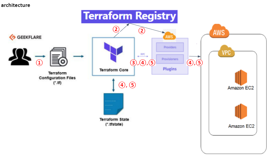 Terraform에서 사용하는 여러 용어, 동작흐름 및 예시를 정리한 설명 글입니다.