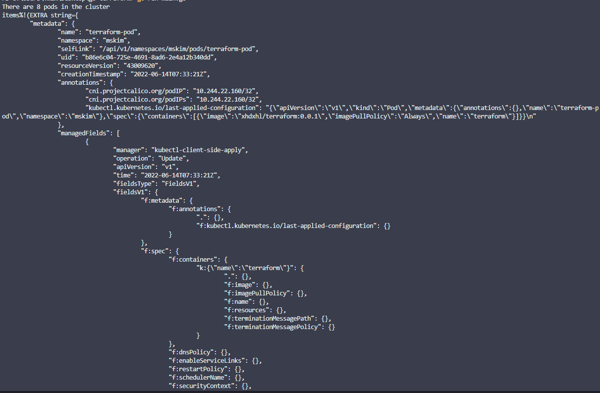 terraformPod, _ := json.Marshal(pods.Items[7])