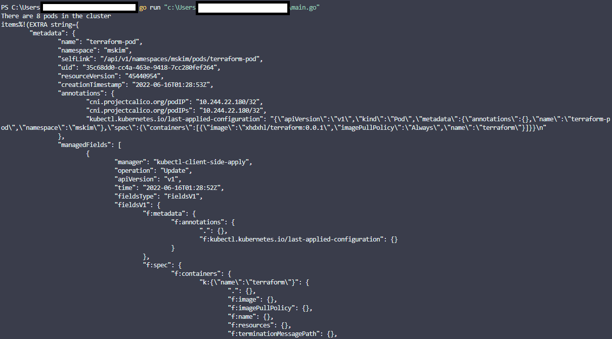 terraformPod, _ := json.Marshal(pods.Items[{몇 번째 pod인지}])
