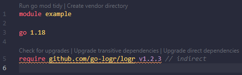 go.mod file의 내용이 다음처럼 변경된 것을 확인할 수 있습니다.
