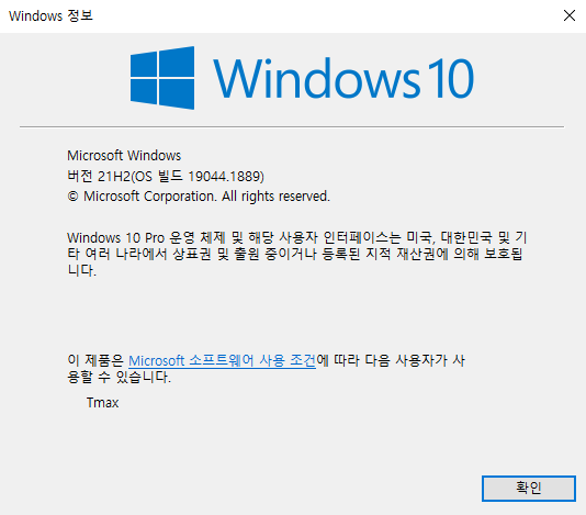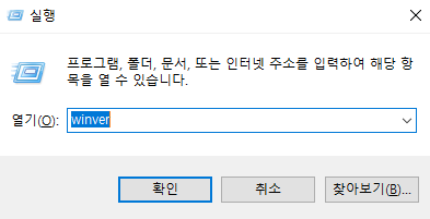 window + r을 눌러 winver를 치고 확인을 누르면 version을 확인할 수 있습니다