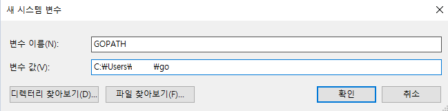 이후 다시 환경변수로 돌아가 GOPATH를 추가해줍니다. user명은 가렸습니다.
