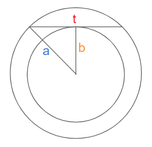 $$ (t/2)^2 = a^2 - b^2 $$ 가 됩니다.