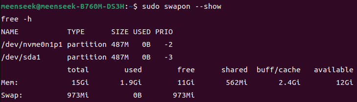 sudo swapon --show