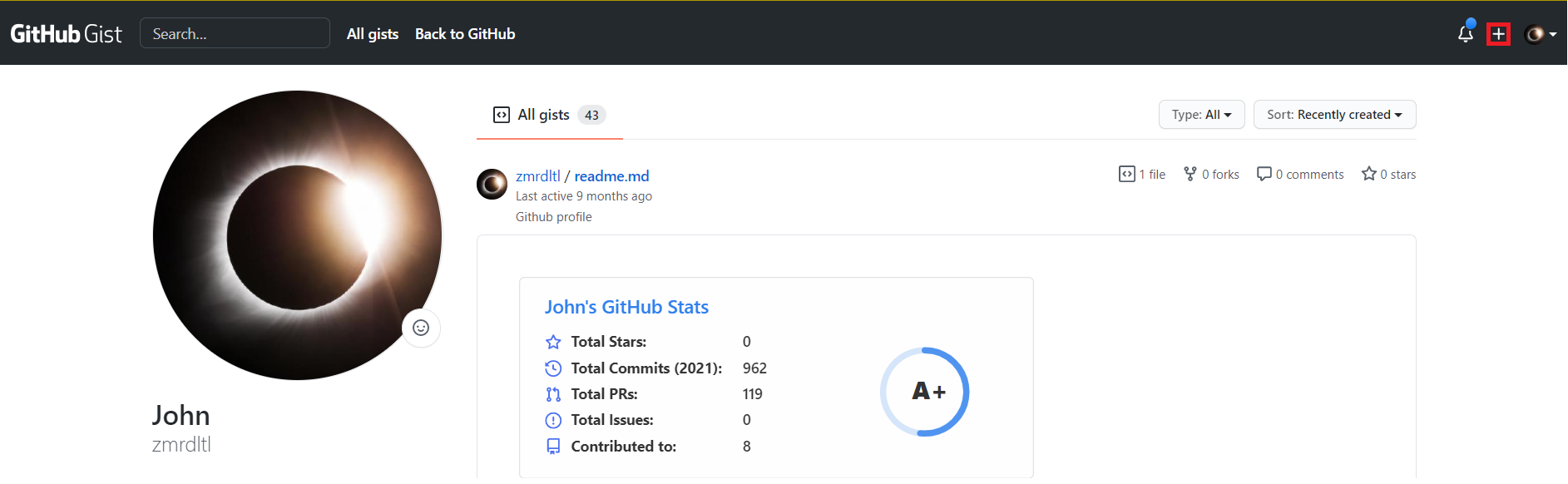 잘되는지 바로 확인하시려면 fork한 repository의 readme.md에 공백을 하나 입력하여 commit하면 actions에서 업데이트 여부를 확인할 수 있습니다. 1번 마지막 부분 actions에 제가 한 행동이 그와 같습니다. 이후 gist로 들어가 확인해줍니다. 전 밤이라네요