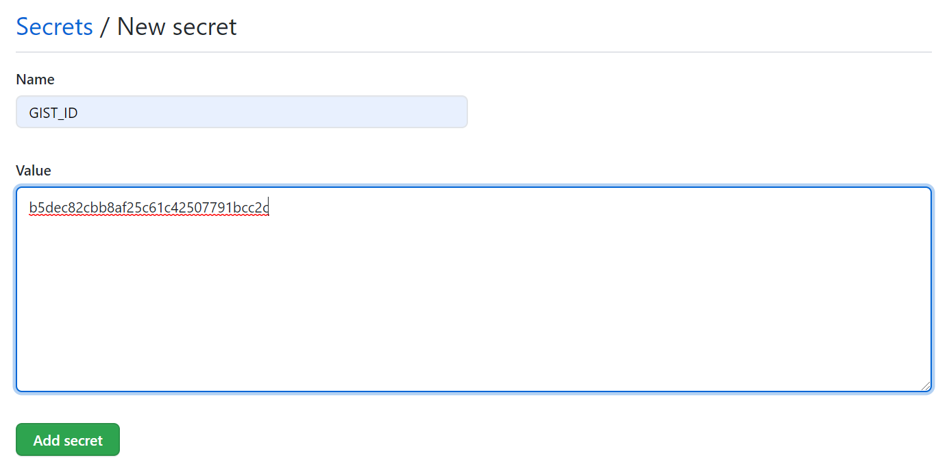제목 : GIST_ID, value : public gist에 생성했던 파일을 클릭해 그 url에 끝부분에 위치한 값