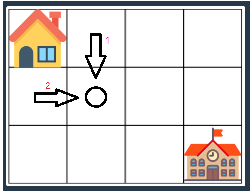 동그라미 표시된 지점으로 가는 방법은 1, 2번 방법 뿐입니다. 따라서,